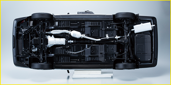 The main body panels, chassis, and attachments are reproduced in high-strength metal, and showcase the characteristics of the coil spring suspension features.